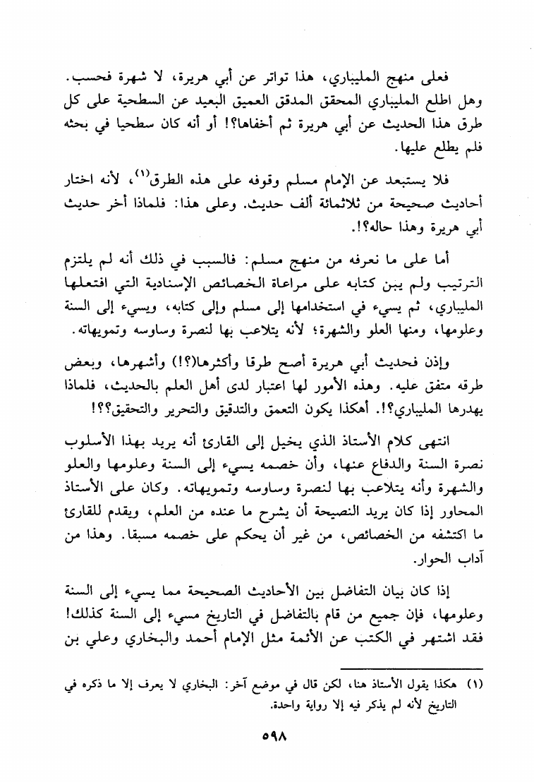 نام کتاب : ما هكذا تورد يا سعد الإبل حوار علمي مع الدكتور ربيع حول منهج المحدثين النقاد القدامى في نقد الأحاديث - صحيح مسلم أنموذجا نویسنده : حمزة عبد الله المليباري جلد : 1 صفحه : 598