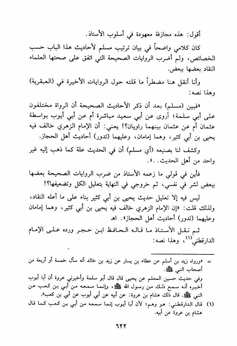 نام کتاب : ما هكذا تورد يا سعد الإبل حوار علمي مع الدكتور ربيع حول منهج المحدثين النقاد القدامى في نقد الأحاديث - صحيح مسلم أنموذجا نویسنده : حمزة عبد الله المليباري جلد : 1 صفحه : 622