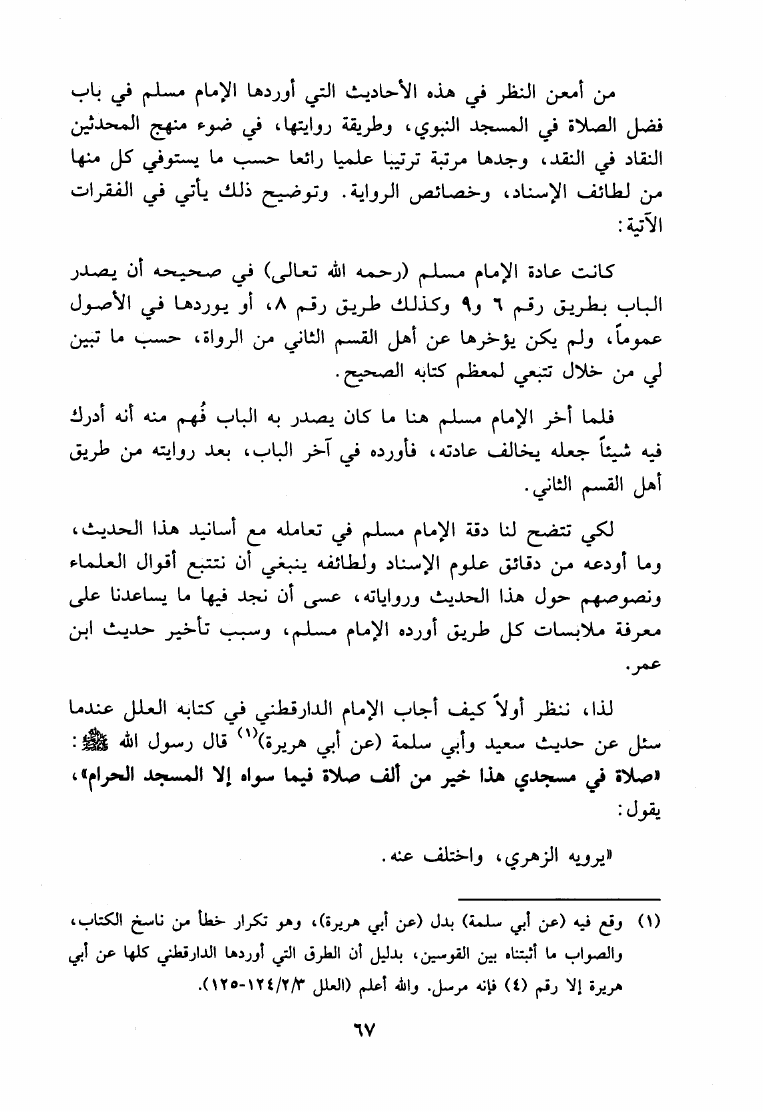 نام کتاب : ما هكذا تورد يا سعد الإبل حوار علمي مع الدكتور ربيع حول منهج المحدثين النقاد القدامى في نقد الأحاديث - صحيح مسلم أنموذجا نویسنده : حمزة عبد الله المليباري جلد : 1 صفحه : 67
