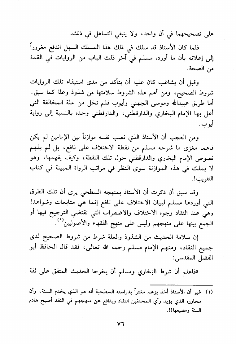 نام کتاب : ما هكذا تورد يا سعد الإبل حوار علمي مع الدكتور ربيع حول منهج المحدثين النقاد القدامى في نقد الأحاديث - صحيح مسلم أنموذجا نویسنده : حمزة عبد الله المليباري جلد : 1 صفحه : 76