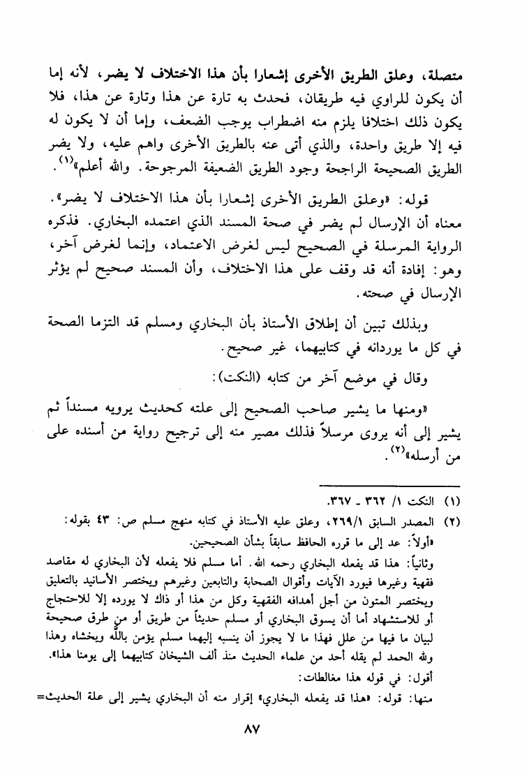 نام کتاب : ما هكذا تورد يا سعد الإبل حوار علمي مع الدكتور ربيع حول منهج المحدثين النقاد القدامى في نقد الأحاديث - صحيح مسلم أنموذجا نویسنده : حمزة عبد الله المليباري جلد : 1 صفحه : 87