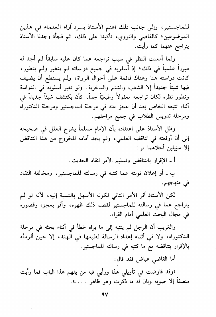 نام کتاب : ما هكذا تورد يا سعد الإبل حوار علمي مع الدكتور ربيع حول منهج المحدثين النقاد القدامى في نقد الأحاديث - صحيح مسلم أنموذجا نویسنده : حمزة عبد الله المليباري جلد : 1 صفحه : 97