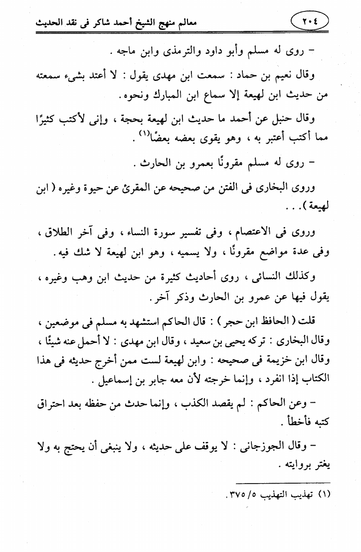 معالم منهج الشيخ أحمد شاكر في نقد الحديث