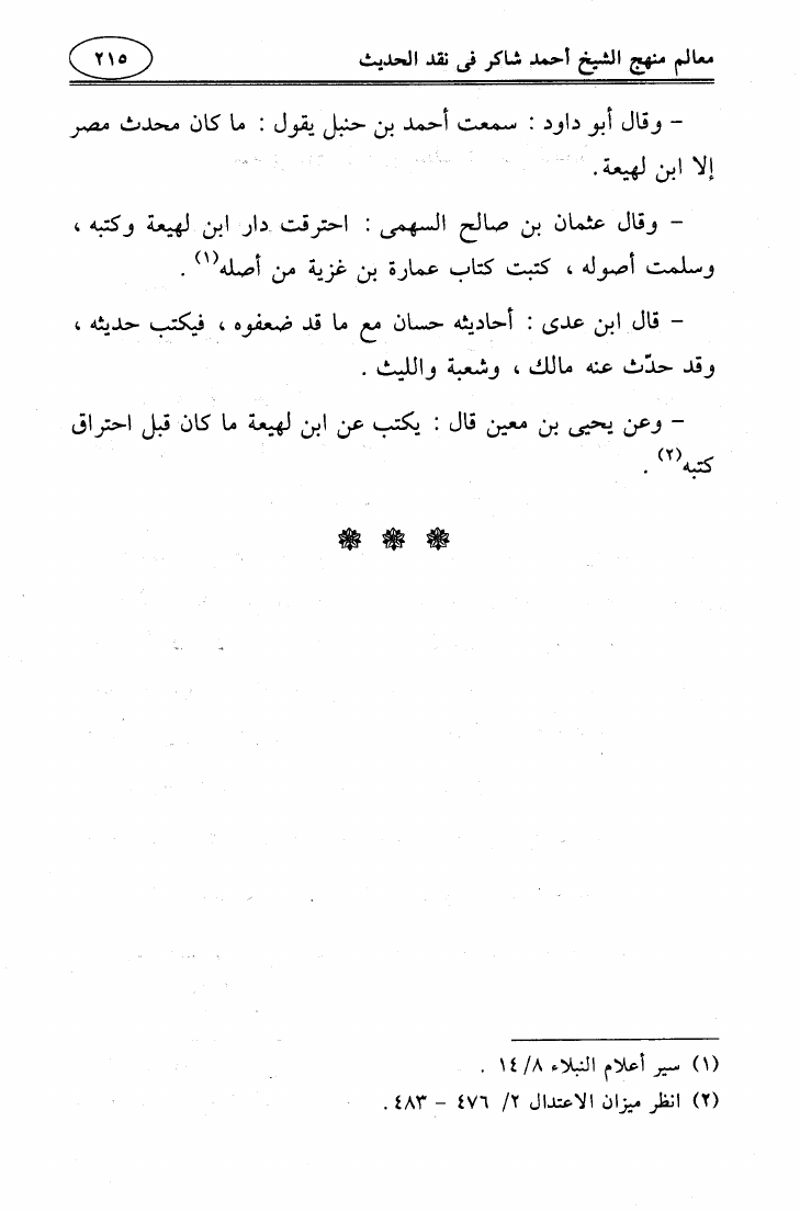 معالم منهج الشيخ أحمد شاكر في نقد الحديث