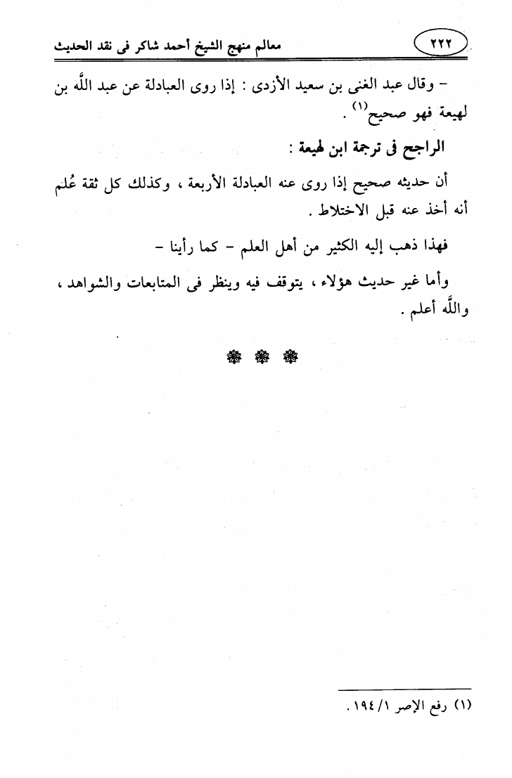 معالم منهج الشيخ أحمد شاكر في نقد الحديث