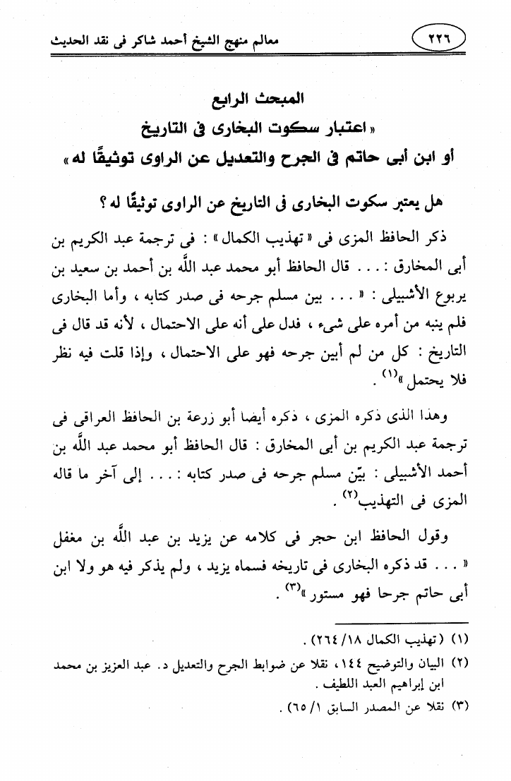 معالم منهج الشيخ أحمد شاكر في نقد الحديث