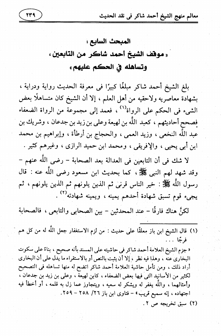 معالم منهج الشيخ أحمد شاكر في نقد الحديث