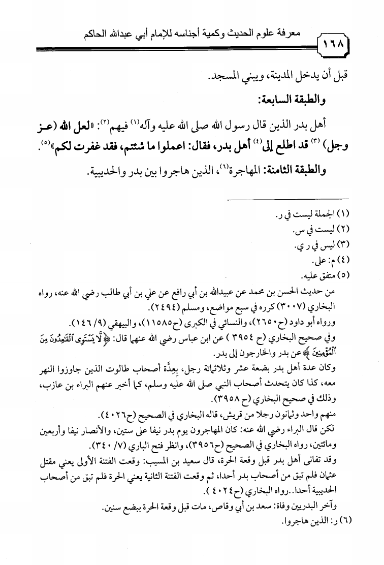 نام کتاب : معرفة علوم الحديث وكمية أجناسه بتحقيقات الحافظين المؤتمن الساجي وتقي الدين ابن الصلاح نویسنده : محمد بن عبد الله الحاكم أبو عبد الله جلد : 1 صفحه : 168