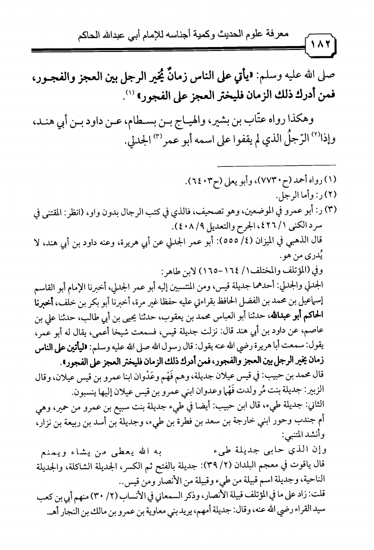 نام کتاب : معرفة علوم الحديث وكمية أجناسه بتحقيقات الحافظين المؤتمن الساجي وتقي الدين ابن الصلاح نویسنده : محمد بن عبد الله الحاكم أبو عبد الله جلد : 1 صفحه : 182
