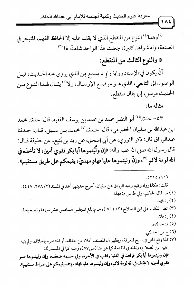 نام کتاب : معرفة علوم الحديث وكمية أجناسه بتحقيقات الحافظين المؤتمن الساجي وتقي الدين ابن الصلاح نویسنده : محمد بن عبد الله الحاكم أبو عبد الله جلد : 1 صفحه : 184
