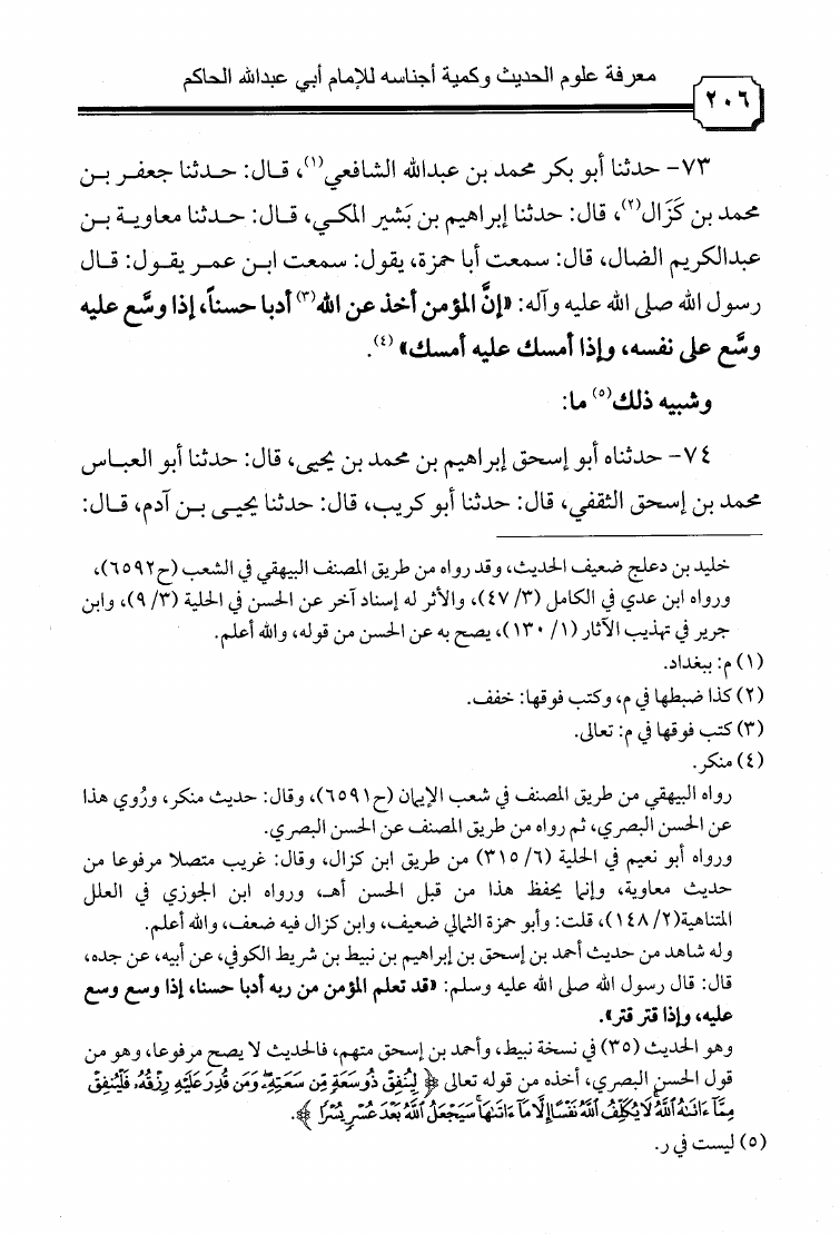 نام کتاب : معرفة علوم الحديث وكمية أجناسه بتحقيقات الحافظين المؤتمن الساجي وتقي الدين ابن الصلاح نویسنده : محمد بن عبد الله الحاكم أبو عبد الله جلد : 1 صفحه : 206