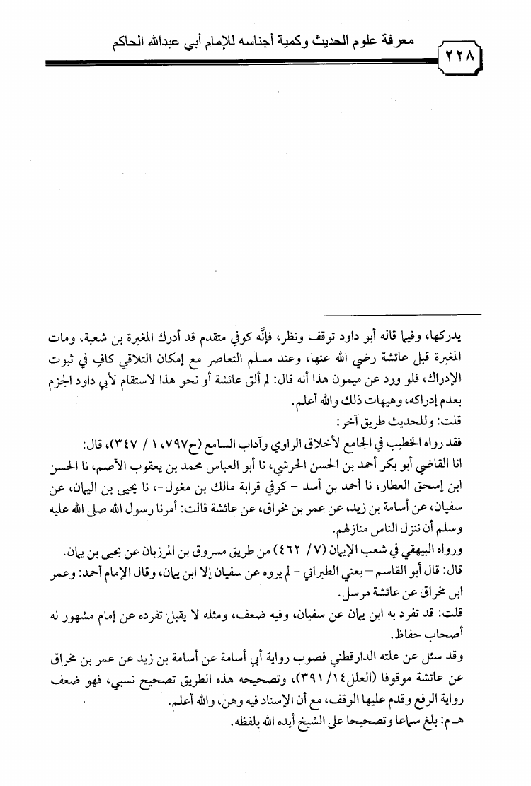 نام کتاب : معرفة علوم الحديث وكمية أجناسه بتحقيقات الحافظين المؤتمن الساجي وتقي الدين ابن الصلاح نویسنده : محمد بن عبد الله الحاكم أبو عبد الله جلد : 1 صفحه : 228