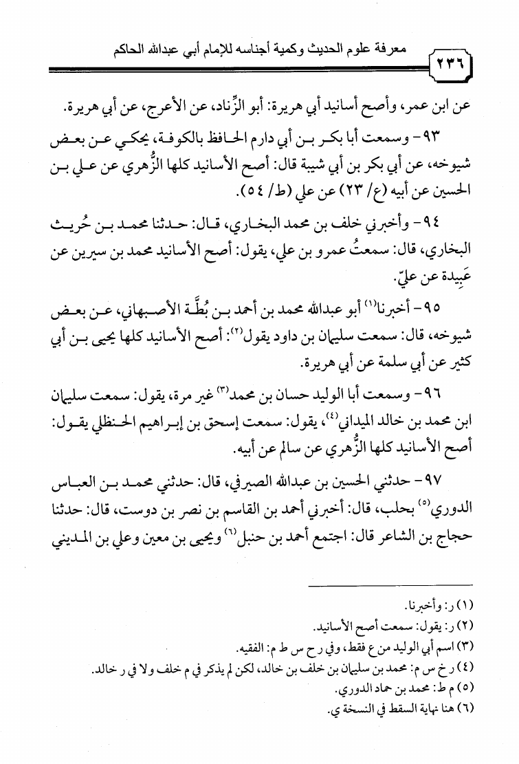 نام کتاب : معرفة علوم الحديث وكمية أجناسه بتحقيقات الحافظين المؤتمن الساجي وتقي الدين ابن الصلاح نویسنده : محمد بن عبد الله الحاكم أبو عبد الله جلد : 1 صفحه : 236