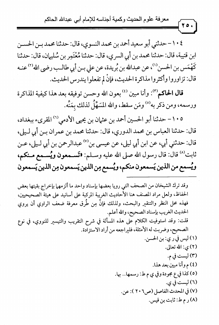 نام کتاب : معرفة علوم الحديث وكمية أجناسه بتحقيقات الحافظين المؤتمن الساجي وتقي الدين ابن الصلاح نویسنده : محمد بن عبد الله الحاكم أبو عبد الله جلد : 1 صفحه : 250