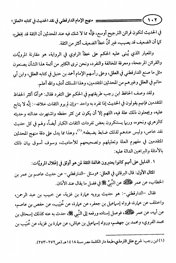 منهج الإمام الدارقطني في نقد الحديث في كتاب العلل