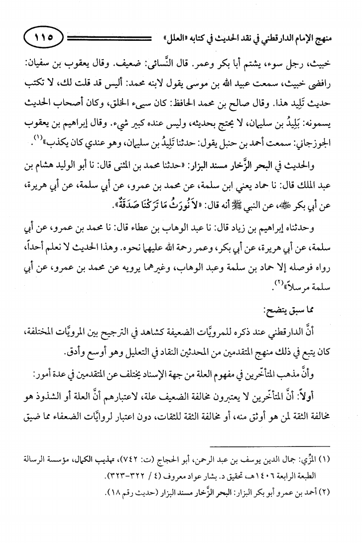 منهج الإمام الدارقطني في نقد الحديث في كتاب العلل