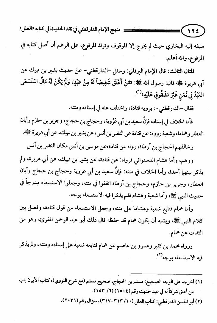 منهج الإمام الدارقطني في نقد الحديث في كتاب العلل