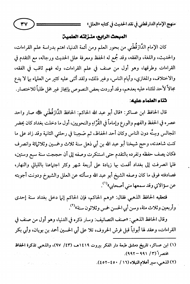 منهج الإمام الدارقطني في نقد الحديث في كتاب العلل