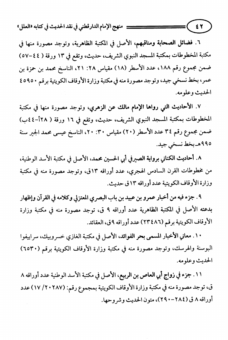 منهج الإمام الدارقطني في نقد الحديث في كتاب العلل
