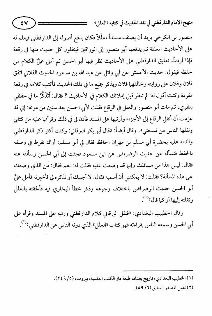 منهج الإمام الدارقطني في نقد الحديث في كتاب العلل