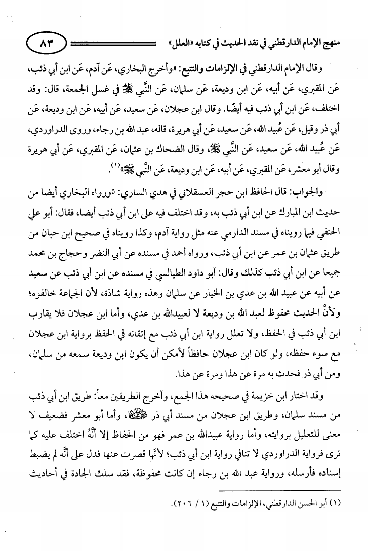 منهج الإمام الدارقطني في نقد الحديث في كتاب العلل
