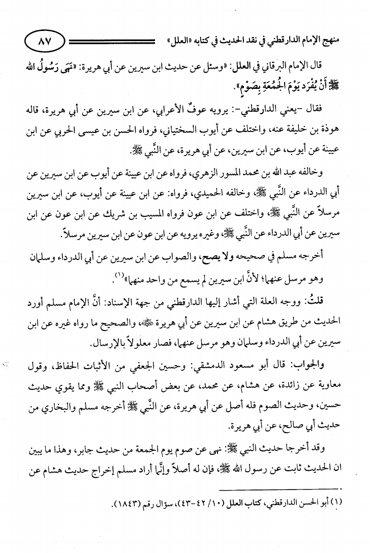 منهج الإمام الدارقطني في نقد الحديث في كتاب العلل