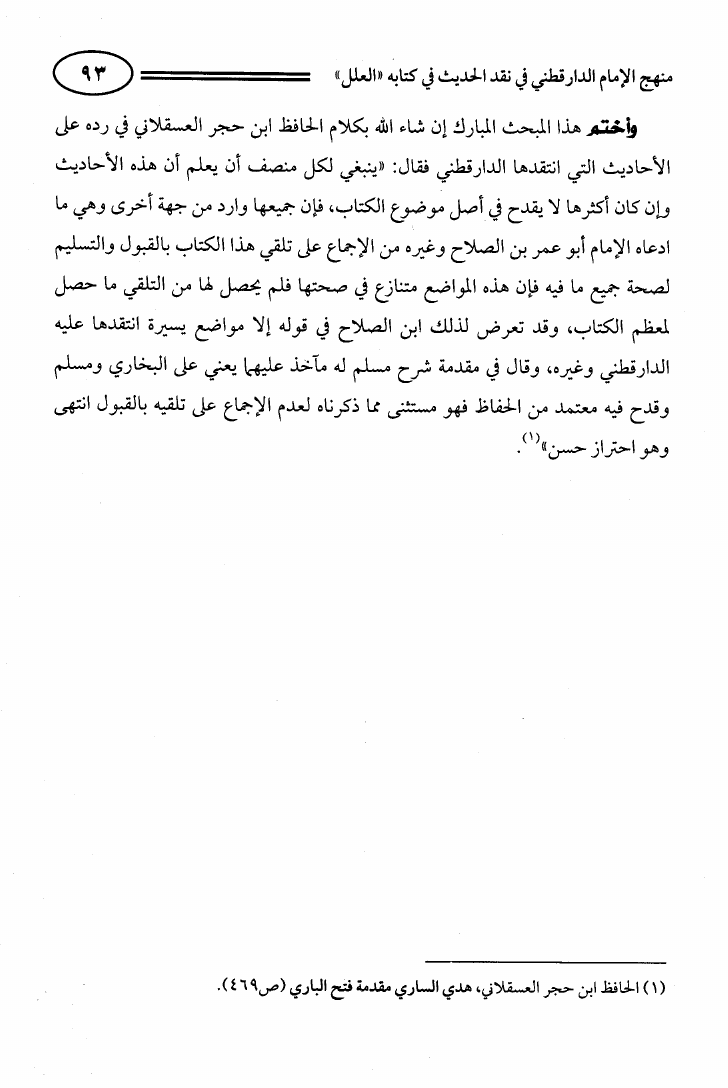 منهج الإمام الدارقطني في نقد الحديث في كتاب العلل