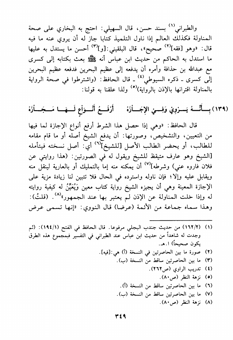 نخبة الفكر في مصطلح أهل الأثر، ثمرات النظر في علم الأثر، قصب السكر نظم نخبة الفكر، إسبال المطر على قصب السكر