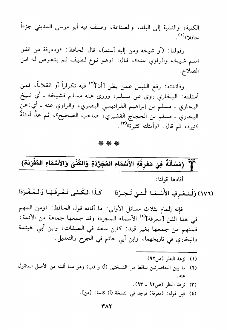 نخبة الفكر في مصطلح أهل الأثر، ثمرات النظر في علم الأثر، قصب السكر نظم نخبة الفكر، إسبال المطر على قصب السكر