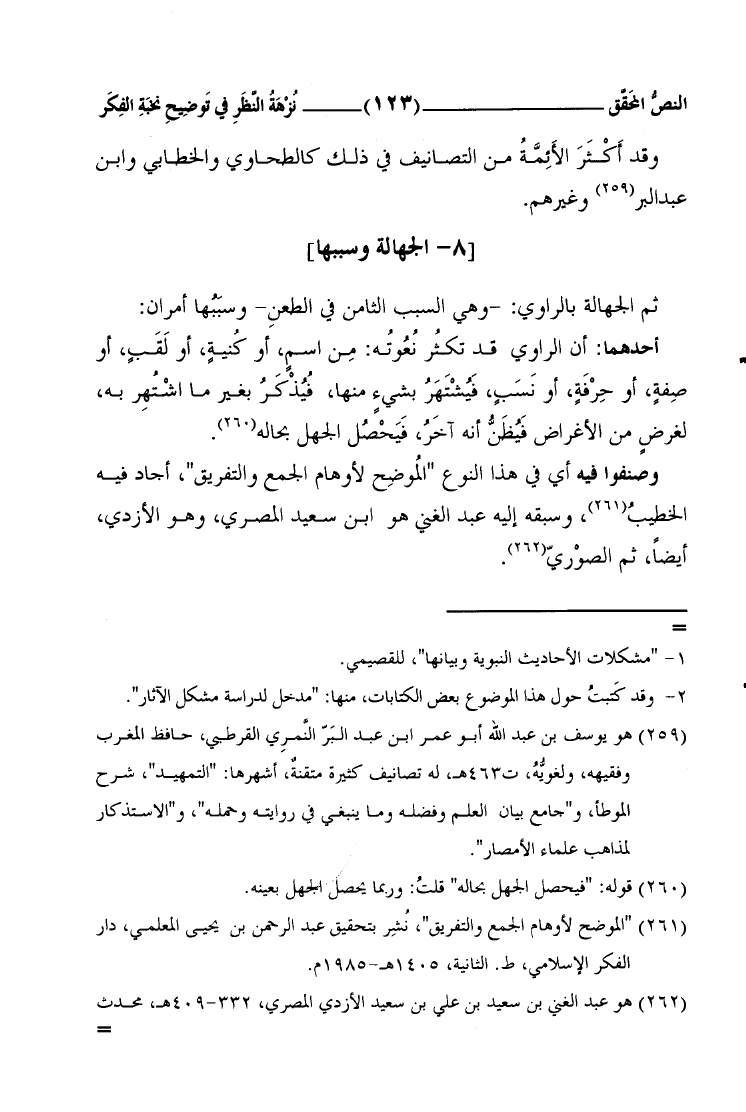 نزهة النظر في توضيح نخبة الفكر في مصطلح أهل الأثر