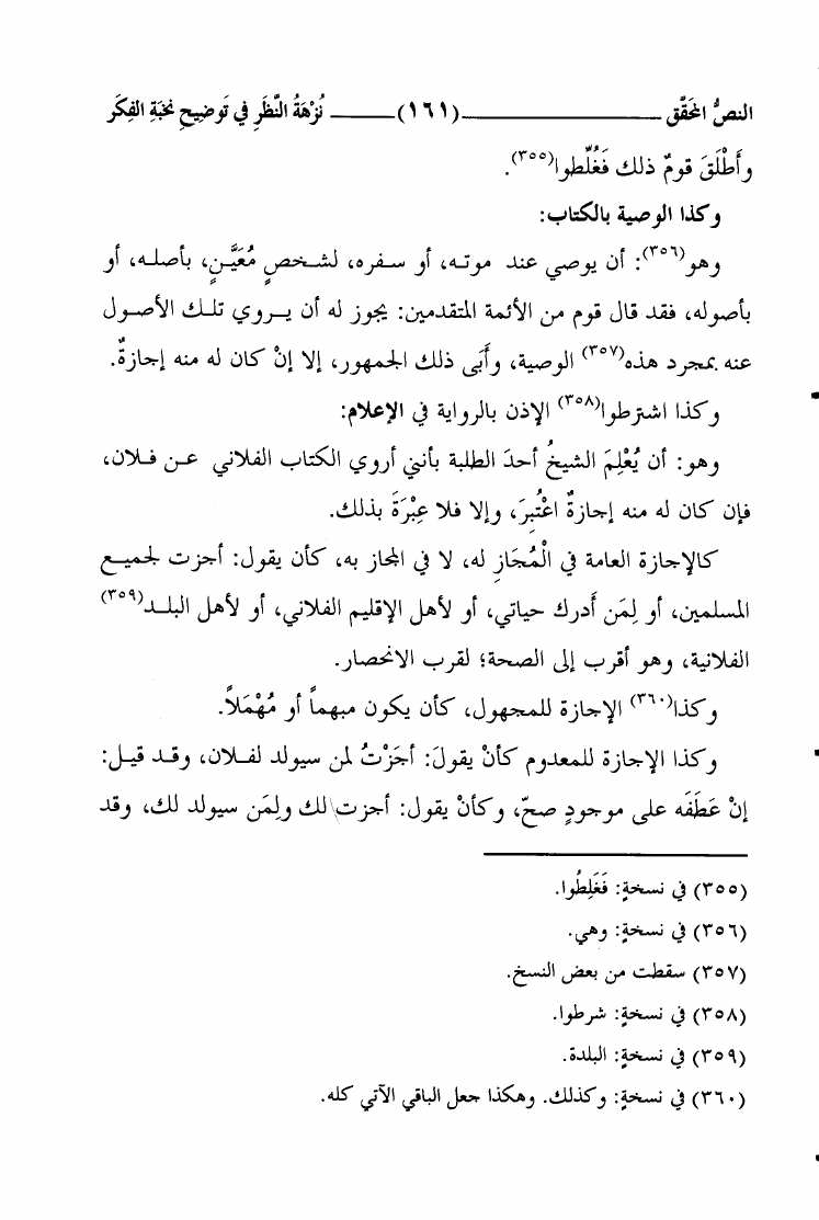 نزهة النظر في توضيح نخبة الفكر في مصطلح أهل الأثر