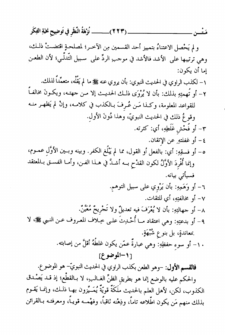 نزهة النظر في توضيح نخبة الفكر في مصطلح أهل الأثر