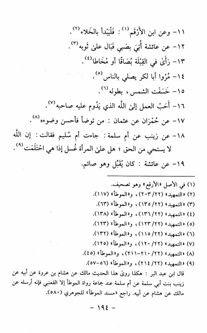 أحاديث الموطأ وذكر اتفاق الرواة عن مالك واختلافهم وزيادتهم ونفصانهم