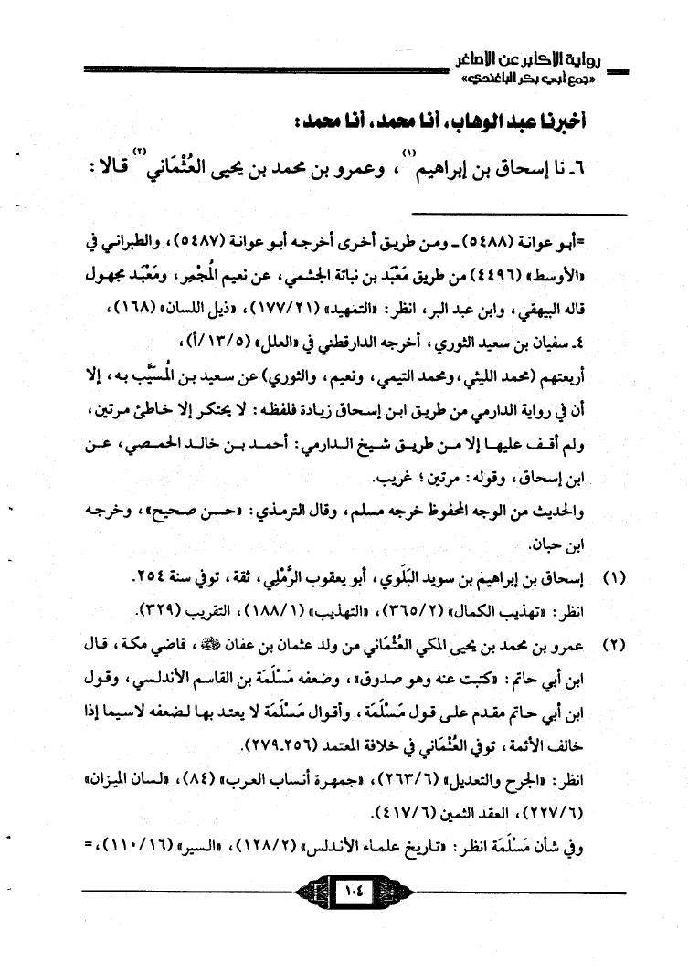 الجزء فيه الأول مما رواه الأكابر عن الأصاغر من المحدثين من الأفراد