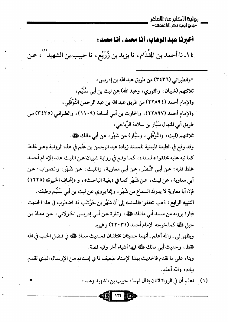 الجزء فيه الأول مما رواه الأكابر عن الأصاغر من المحدثين من الأفراد
