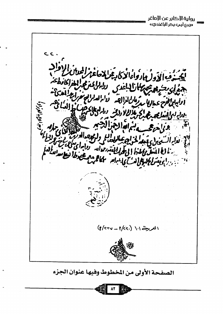 الجزء فيه الأول مما رواه الأكابر عن الأصاغر من المحدثين من الأفراد