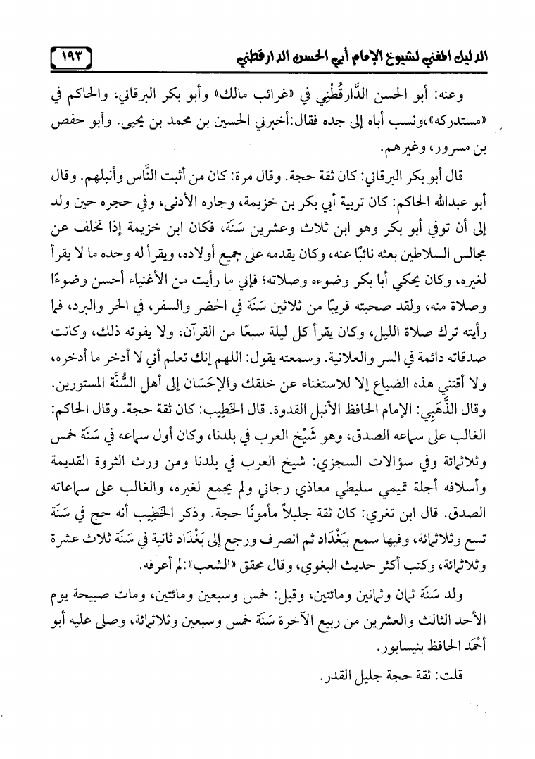 الدليل المغني لشيوخ الإمام أبي الحسن الدارقطني