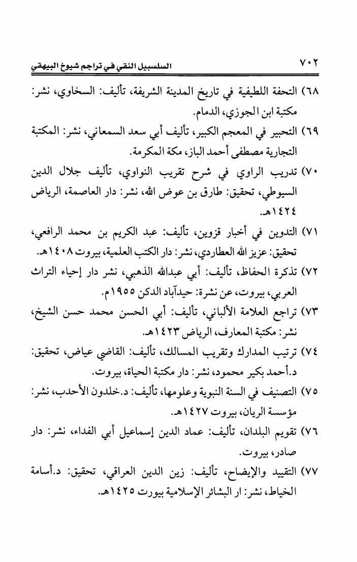 السلسبيل النقي في تراجم شيوخ البيهقي