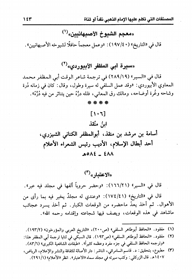المصنفات التي تكلم عليها الإمام الحافظ الذهبي نقداً أو ثناء