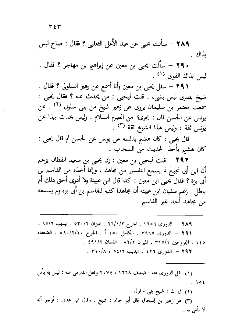 سؤالات ابن الجنيد ليحي بن معين
