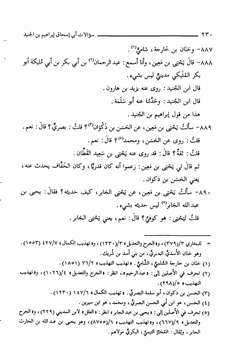 سؤالات أبي إسحق الجنيد ليحي بن معين في الجرح والتعديل وعلل الحديث