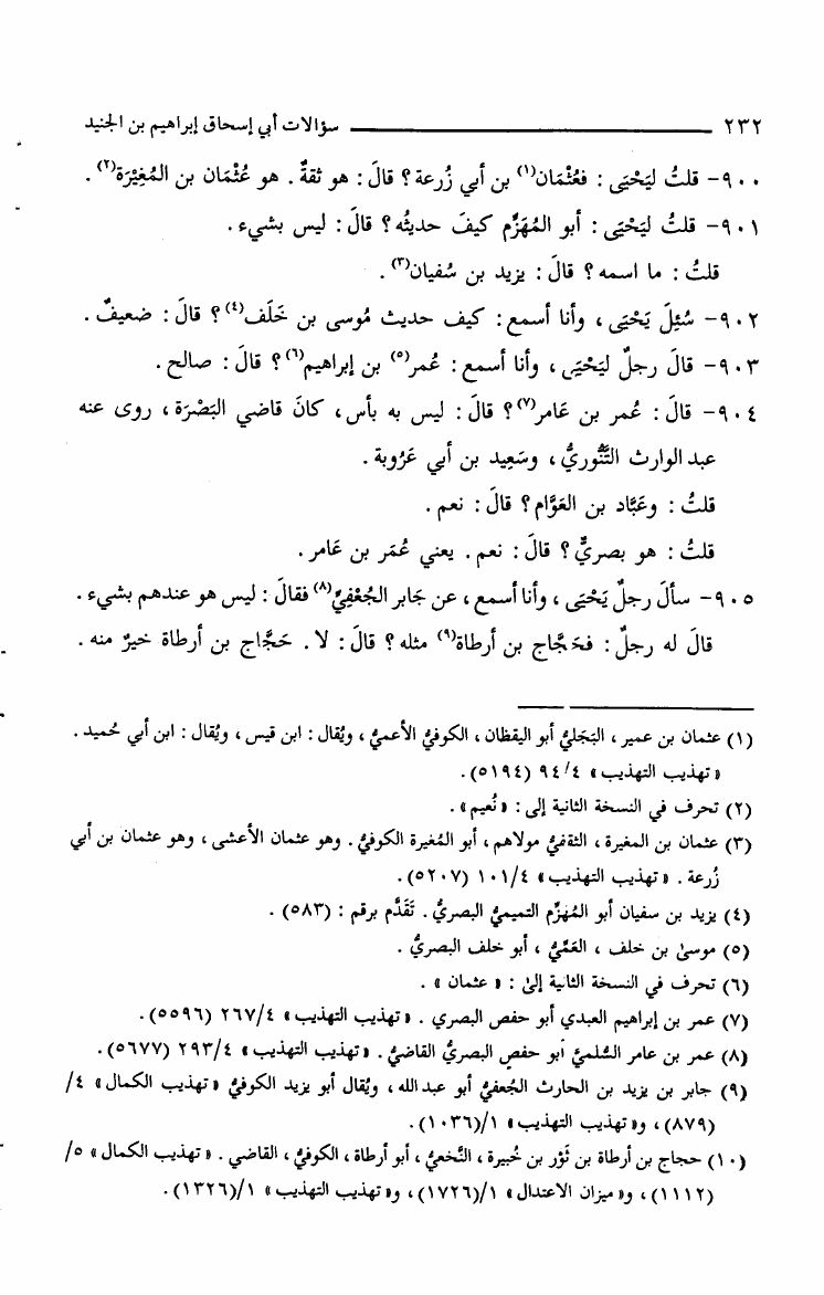 سؤالات أبي إسحق الجنيد ليحي بن معين في الجرح والتعديل وعلل الحديث