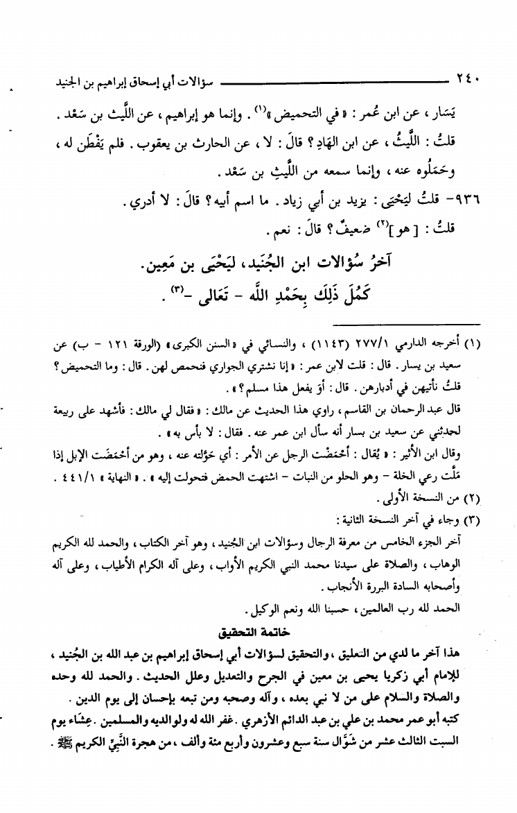 سؤالات أبي إسحق الجنيد ليحي بن معين في الجرح والتعديل وعلل الحديث