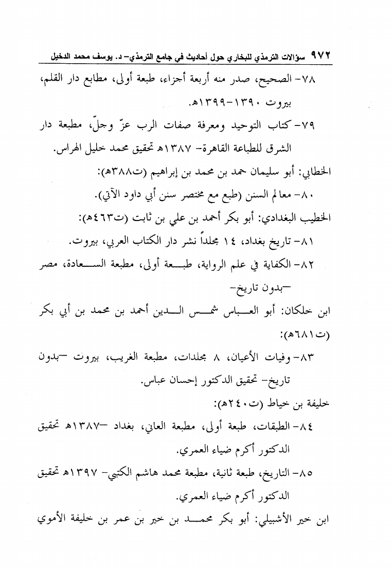 سؤالات الترمذي للبخاري حول أحاديث في جامع الترمذي