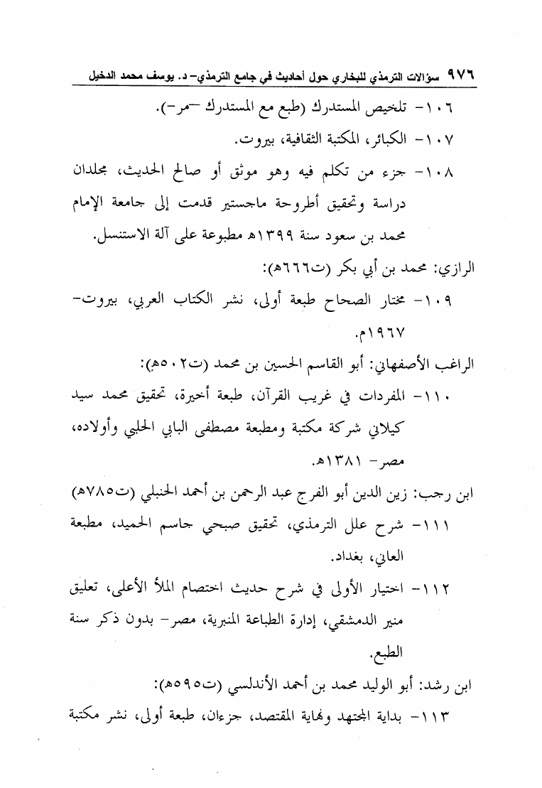 سؤالات الترمذي للبخاري حول أحاديث في جامع الترمذي
