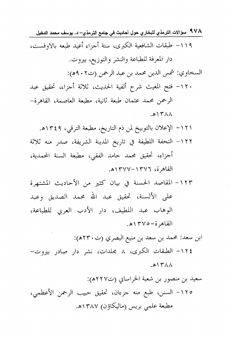 سؤالات الترمذي للبخاري حول أحاديث في جامع الترمذي