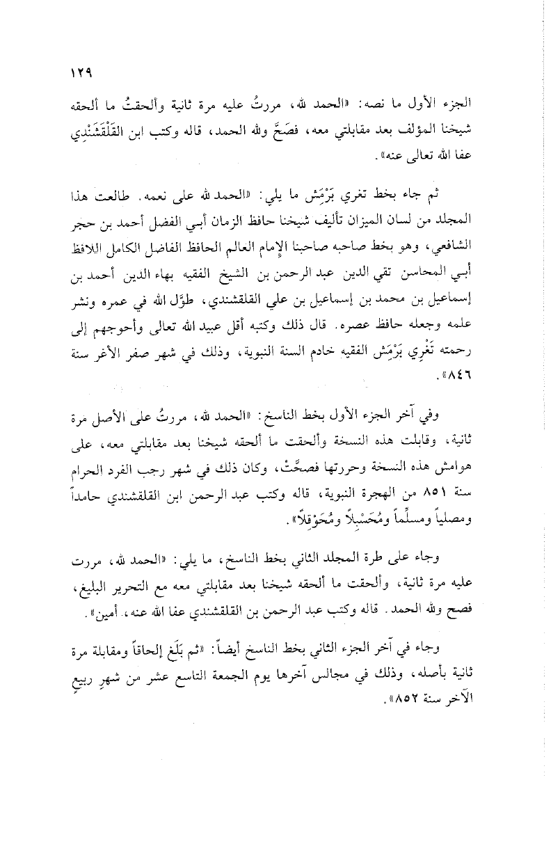 أحمد بن علي بن حجر العسقلاني أبو الفضل شهاب الدين