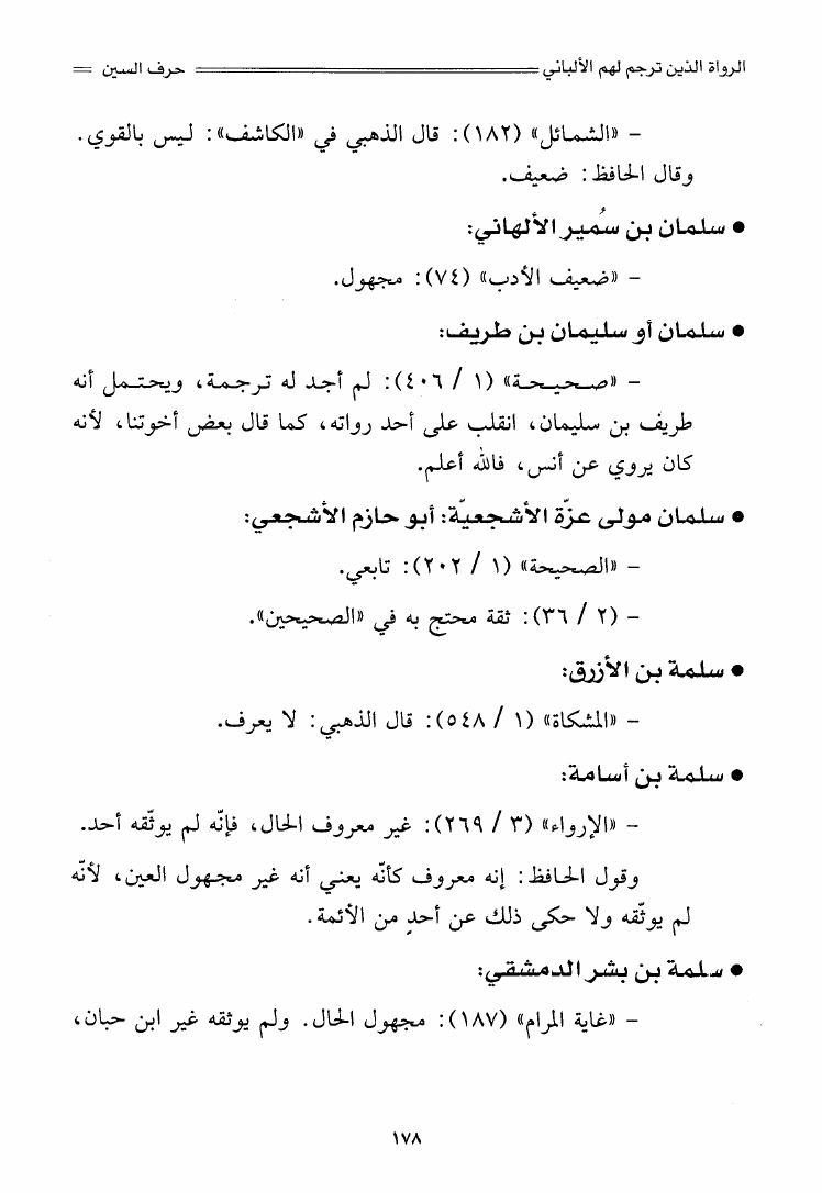 معجم أسامي الرواة الذين ترجم لهم العلامة محمد ناصر الدين الألباني جرحا وتعديلا
