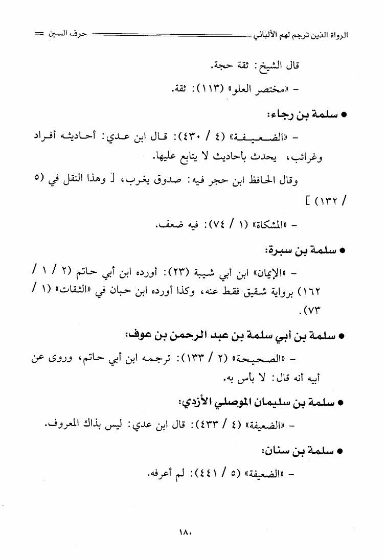 معجم أسامي الرواة الذين ترجم لهم العلامة محمد ناصر الدين الألباني جرحا وتعديلا