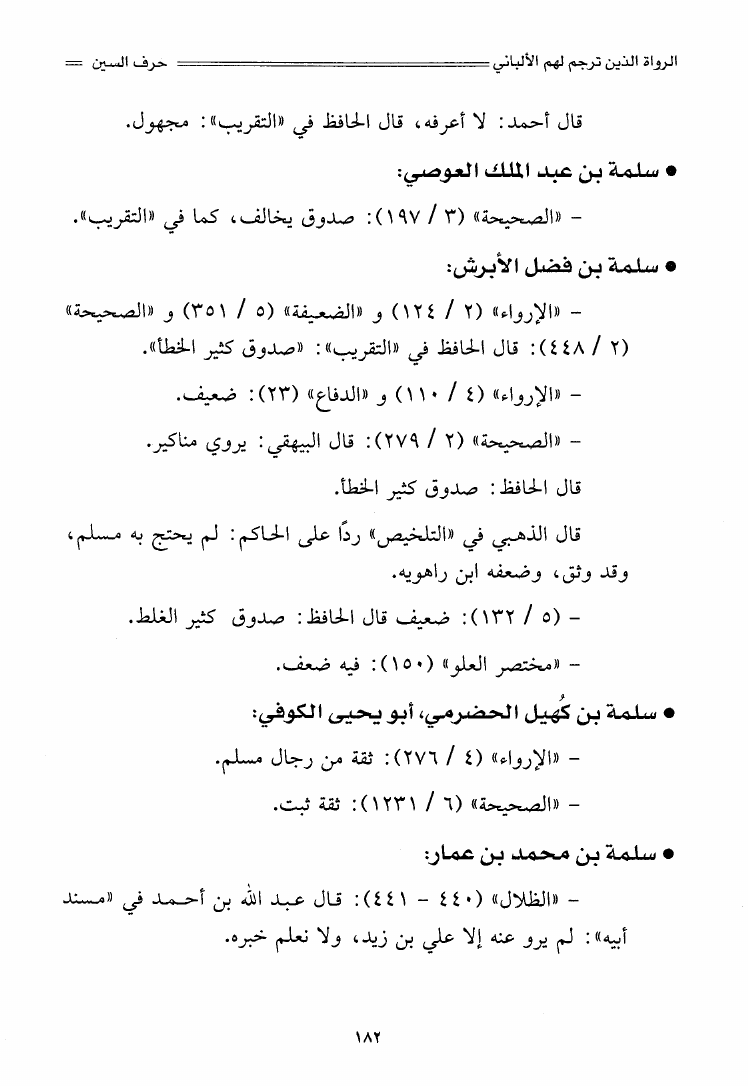 معجم أسامي الرواة الذين ترجم لهم العلامة محمد ناصر الدين الألباني جرحا وتعديلا